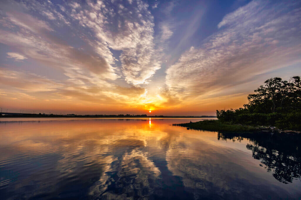 北海道の初夏の朝はとても早いのです。石狩川河口直近からの朝焼けは午前3時30分前後から始まっています。その後の朝陽は15分後からショータイム!